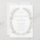 Upplev en aning sofistikerad med den här förfinade bröllopsinbjudan, med vattenfärgade illustrationer av lush grey, eukalyptus löv och ömtåliga vita blommor. Ett perfekt val för vår eller sommar firande.