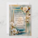 Det här bröllop spara datum-kortet har ett 3D-stift och har en sofistikerad utformning med vita blommor och guldfärgade löv i elegant, som är konstnärligt placerade runt ett klassiskt ram. Bakgrunden visar en god blandning av teal- och beige-toner som skapar en lugn och romantisk ambians. De detaljerade accenterna från blommigt inslag och guld ger en aning lyx, medan ram är perfekt för att lyfta fram huvudtexten, till exempel "Spara datumet" överst, parets namn i mitten och bröllop datum och plats vid grund. Den här designen är elegant och romantik och ser till att dina gäster sparar datumet för din speciella dag. Anpassa texten om namn och detaljer om bröllop. Du kan ladda ned kortet till din mobila enhet eller dator. Jag designade kortet med generativ hjälpteknik.