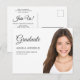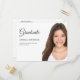 Låt familj och vänner veta hur stolta du är över student med detta moderna vita fotomeddelande/inbjudan till studenten. Anpassad med ett favoritfoto av hög kvalitet i porträtt eller något annat favoritfoto och all information du behöver. Det här kortet är designat för att vara allt du behöver från fotoannonsering, ceremonininbjudan till studenten och inbjudan till studentfest.