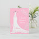 Den eleganta vitbröllopsklänningen och virvlar runt på en rosa bakgrundsinbjudningskort för möhippan.