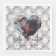 Den här anpassningsbarna napkins har ett Alla hjärtans dag i kärlek eller bröllop med ett foto i ram. Bakgrunden är en vit kudde mönster med diamanter och silver-mosaik ram. Ett provfoto av ett gift eller ett förlovad par placeras i mitten.