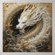 Elegant vit gyllene drakkonst med stor gyllene horn och diamant i huvudet i canvas museum stilar.