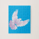 Vitduva i en blå himmel. duvaflyg på vingen.