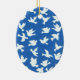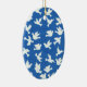 En nätt prydnad med vitduvor på en ljus blåttbakgrund, från en handpainted papper collagedesign av Judy Adamson.