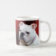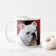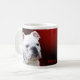 En avbilda av en engelsk bulldogg för vit på en röd och svart bakgrund.