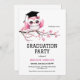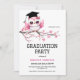 En charmerande och vismisk inbjudan från studenten med en mousserande rosa glitter uggla gick lätt på en känslig blommar för körsbär från Sakura i gren. Uggla bär stolt en klassisk svart studentmössa, som symboliserar prestation och framgång. Den här designen blandar elegans med en lekfull beröring och skapar perfekten för att fira en student stor dag i stil