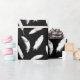 Vitfjädertryck på en svart bakgrund - befjädrar den grafiska designen för blandat massmedia av vit och att flyta på en kontrastera bakgrund