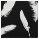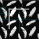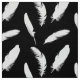 Vitfjädertryck på svart tyg