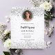 Inbjudan till elegant 21:e (eller någon ålder) födelsedagsfest. En vit chic på framsidan. Dekorerad med faux silver konetti. Anpassa och lägg till ditt foto i faux diamant ram, namn och party. Namn är skrivet med ett handskript i stil. Baksida: Faux silver tittar bakgrund med gnistor. 1 lakan = 1 inbjudan tryckt kant till kant.