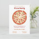 En vit Pizza Party-födelsedagsinbjudan med en fullt Margherita-pizza illustration. Perfekt för en födelsedag, pension, bakgård, grannar party, uppvärmning av hus, babydusch eller något pizzatematmottagning som du organiserar med vänner eller familj!