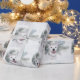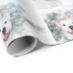 Lyckligt och le vitpitbullterrieren med jullövruskor i helgdag för bakgrundshund älskarejul som slår in papper