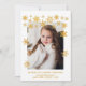 Fira säsongen med det vackra julfotokortet i personlig, med en skarp vit bakgrund som ger ett känsligt guld snöflingor. Perfekt för att skapa ett foto för din favoritfamilj, det här kortet är helt anpassade med ditt familjs helgdag namn och hjärtligt meddelande. julglädjen med vänner och familj i stil med denna elegant och tidlös design.