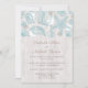 Vitkalad träsnäckskal strand mottagningskort med endast en rustik, chic vitkalad trädestrign med ett blått och tan färgschema, med en illustration av ett snäckskals kontur längs toppen. Era personliga vigsel- och mottagningsdetaljer är specialtryckta i brunt och tan över den vitkalade trädestrignen. Dessa mottagningskort med snäckskal är perfekta för era strandinspirerade efterbröllopsfiranden. Matchande svars kort och andra artiklar finns tillgängliga.