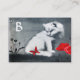 VITKATT MED RÖD SMÖTTMONOGRAM, pärlor Visitkort