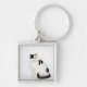 Vitkatt med svart fläckar fyrkantig silverfärgad nyckelring