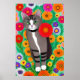 Vitkatt och vit Grått och rödblomma Poster
