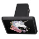 En vit enhörn med blommor.