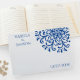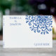 Fira din speciella dag med en smula elegans och sofistikering med vår unika och designade bröllopsinbjudan. Med en pristinvit bakgrund som är försedd med en meriserande blå rotationssymmetri mönster i dekorationer och prickar skapar upp ett blommande mönster, fångar denna inbjudan på ett vackert sätt det innersta av tidlös romantik och modern charm. Denna inbjudan är perfekt för par att hitta en blandning av contemporary och klassiskt elegans, som anger tonen för ett bröllop som kommer att bli ihågkommet för dess skönhet och ära. Ordna er i dag och se till att ert uttalande från bröllop verkligen blir oförglömligt!