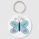 Vitmisk blå fjäril med Vingar från hjärtat Nyckelring