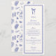 Öka din mottagning med våra vita menyer i bröllop, designade för att ge din matupplevelse en aning konstnärlig charm. Med handritade blå illustrationer och elegant, handskrivna detaljer erbjuder dessa menyer ett unikt alternativ till traditionella utformningar. Som ett perfekt komplement till ert bröllop-tema anger de tonen för ett firande fyllt av kreativitet och sofistikering, vilket garanterar att dina gäster gläder sig åt både den visuella appellen och kulinariska erbjudanden.