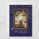 Några marinerade, indigo- och honeycomb-färgader, vita blommor, gräs och löv, hand plockade i vattenfärg, över en indigo-, lila- och marinbakgrund, dekorerar denna elegant, moderna och enkla foto-bröllop spara datum-kortmall. Anpassa den med texten och bild. Ett underbart val för ett modernt par, ett trädgårdsbröllop och ett magiskt, intimt firande.