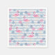 Pappra servetter med mönster med en roligt sommarvibe. Rosa flamingos och ananas sätts på ett ljusblått strippat mönster med löv och hjärta överallt.