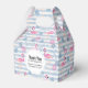 En pyttelåda med en mönster med en roligt sommarvisare. Rosa flamingos och ananas sätts på ett ljusblått strippat mönster med löv och hjärta överallt.