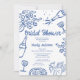 Whimiscal Blue Hand plockade Cherub Inbjudningskort för möhippan Bold och Blue hand plockade inbjudningskort för möhippan med blommor, champagne flaska, glasögon och körsbärsmedel. All text är redigerbar och skapar denna mycket mångsidiga mall som kan användas för alla tillfälle.