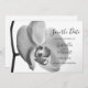 Ange tonen för dina kommande ungar med elegant White Orchid Bröllop spara datum annons. Den här anpassningsbarna botaniska giftermål-behållan med datumangivelsen har ett svart och vitt foto av en vit blommigt av en vit blommar av halvblomma på stjälken.