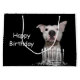 Väntningar för för vitpitbullterrieren eller apbt för att någon ska göra en wish och att blåsa ut stearinljusen så honom kan äta några gulliga hund älskare för tårta, födelsedag somgåvan hänger lös
