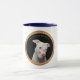 Vitpitbull med röda kyssar all över hans framsida mugg