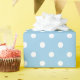Vitpolka dots på stugablått presentpapper
