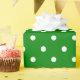 Ett slående in papper som byggas med en vitpolka, pricker mönster med ett stort avstånd mellan pricker på en grön bakgrund. Skräddarsy den gröna bakgrunden i ett lätt långt.