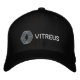 Inbroderad VITREUS-Logotyp på framsidan och vitreus.io-URL på baksidan.
