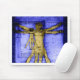 Leonardos Da Vinci Vitruvian man i dramatiska blått och guldfärger.