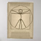 Leonardo Da Vincis relativt dunkla originalutkast av Vitruvianska mannen är daterat många år före berömden teckning. Bortsett från de uppenbara förfiningarna av hans teknik ligger förslaget häpnadsväckande nära det slutliga arbetet. Intressant nog, även om texten redan fanns i en tidigare hand av hans berömd "spegel skriftlig", var texten i förslaget skriven på engelska. Da Vinci-forskare diskuterar fortfarande betydelsen av detta.