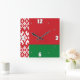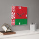 Vitryssland Flagga Numbers Red White Grönt Mönster Square Wall Clock med flagga Belarus i engelsk Grönt, Lava Red and White färger tryckt över hela klockan. Klocknummer i det vackra teckensnittet "Peachy Keen" skrivs i den vita färgen med den svarta konturen. Veckan Clock från Vitryssland är den perfekt gåvan till vitryssarna som är stolta över sitt arv.