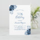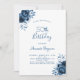 På framsidan: Dekorerad med blommigtar, blommor, ro i blå nyans. Anpassa och lägg till information om namn och party. Namn och texten: 50:e födelsedag skrivs med ett handskript i stil, blått färgad brev. Perfekt för en vinter eller vår födelsedagsfest! Bakåt: Klassisk blå färgad.