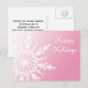 Skicka varma hälsningar med den festliga vita snöflummen på Rosa Glad helg Postcard. Den här elegant anpassningsbarna Snowflake-julkort har en kompakt vit snöflingdesign på rosans övertoningsbakgrund.