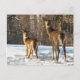 Två vitstjärtade hjortar står framför städsegröna träd.
