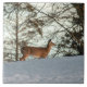 Trefligt ljus på en hjort som står på toppen av en snöig kulle.
