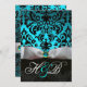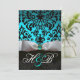 VITT BAND TEAL AKVABLÅ SVART DAMASK MONOGRAM INBJUDNINGAR