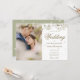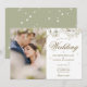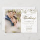 En stilfull bröllopsinbjudan med ömt vårblommande ramar runt dina bröllopsdetaljer i elegant guldskrift. Personifiera med dina speciella evenemangsupplysningar och speciella foto. Baksidan har spridda vita blomblad. Designad av Thisisnotme©
