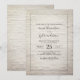 En bröllopsinbjudning med vit tegelbakgrund med mörk grått och gräns.