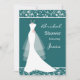 Vitt bröllop på en tealbakgrund som gränsar till bladdammmönstret Inbjudningskort för möhippan. Den här inbjudan finns även i andra färger.