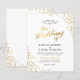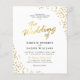 Moderna bröllopsinbjudningar i budgetutförande med en elegant vit bakgrund som kan ändras till valfri färg, guldglitter och en bröllopsmall som är enkel att anpassa.