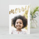 Den här originalversionen och den moderna typgrafiska helgdag har ett foto- och faux-guld-skript som läser Merry på vit bakgrund. Anpassa kortet med ditt foto, namn och valfritt år. Finns i andra färg-alternativ. Hitta fler helgdagskort och andra säsong-produkter i butiken. Copyright © 2020 Iveta Angelova for Rosa Lemon Papper Co, Med ensamrätt för alla höger