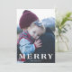 Det här är en fetstilt MERRY-design med utfallsfoto och övertäckning i vit fullt. MERRY helgdag julfotokort