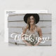 Vitt Fet Retro-skript - vykort för foto Studenten Tack | Skicka tack med det här anpassadets liggande tack för vykortet. Den har ett retroskript och en enkel typografi. Detta kommer att bli perfekter för bröllop, studenten och så mycket mer.