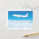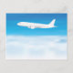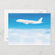 Vitt flygplan med molnbakgrund i blå himmel vykort